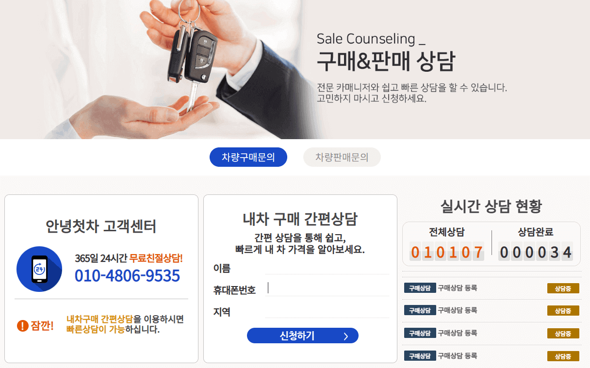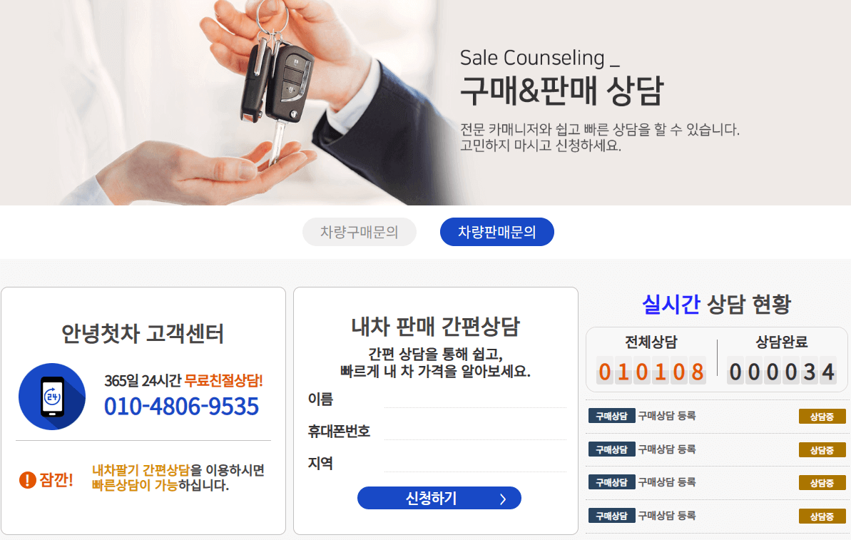 1. 타시던 소중한 차를 내차 팔기 무료상담 신청을 합니다.