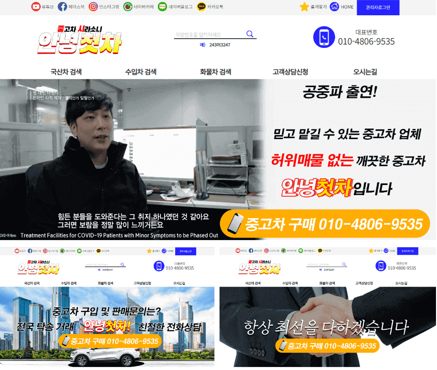 중고차 매매업체 안녕첫차는 공중파 TV에 출연할 만큼 허위매물이 없는 믿고 살 수 있는 안전한 중고차 매매업체입니다. 특히, 안녕첫차는 유튜브를 운영하면서 31만여 명이 넘는 구독자 수를 기록하고 있고, 중고차 거래에 대한 불신을 없애도록 선도하는 선구자적 업체이기도 합니다. 개인 블로거로서 안녕첫차와는 일면식도 없고 홍보글 작성 의뢰를 받지 않았음을 밝혀드립니다.