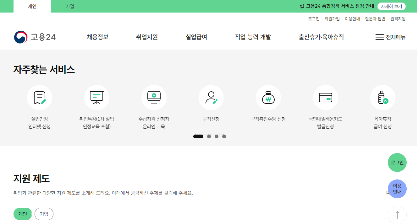 - 고용보험 홈페이지: www.ei.go.kr - 고용보험 가입 이력 조회, 실업급여 온라인 신청